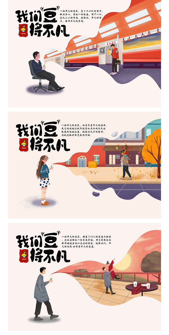 豆?jié){作為中華傳統(tǒng)美食的獨(dú)特標(biāo)志之一,經(jīng)過(guò)幾千年的沉淀,給人留下了歲月洗禮的陳舊印象,而專注于豆?jié){領(lǐng)域30余年的永和豆?jié){,在發(fā)展過(guò)程中加入大膽的創(chuàng)意和想象力,勇于突破豆?jié){傳統(tǒng)陳舊形象,讓豆?jié){更富活力的同時(shí),也受到越來(lái)越多消費(fèi)者的青睞,表達(dá)對(duì)永和豆?jié){的喜愛(ài)之情。