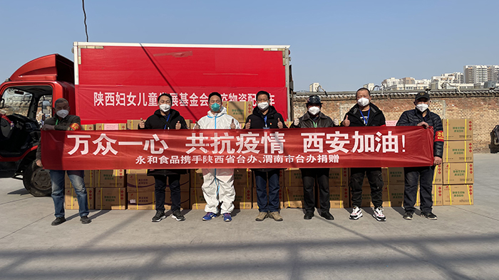 病毒無情,人間有愛。自西安爆發(fā)新冠肺炎疫情以來,一直牽動著全國人民的心。永和食品公司作為愛心企業(yè),始終密切關(guān)注著西安疫情發(fā)展,第一時間在陜西省臺辦、渭南市臺辦協(xié)助下,與陜西省婦女兒童基金會確定捐贈各項細節(jié),迅速調(diào)配物資,承擔起一個民族企業(yè)該有的社會責任,積極投身公益事業(yè),為疫情防控貢獻力量。