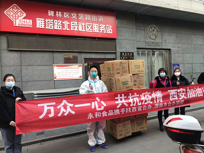 春節(jié)將至,各地疫情形勢再次嚴峻復雜,永和食品公司時刻關(guān)注著防控形勢的發(fā)展。1月14日,永和食品公司在陜西省臺辦、渭南市臺辦支持下將498箱豆?jié){粉送抵西安,并在16日由陜西省婦女兒童基金會志愿者陸續(xù)全部發(fā)放到各社區(qū),支持社區(qū)一線人員、困難群眾和志愿者抗擊疫情。