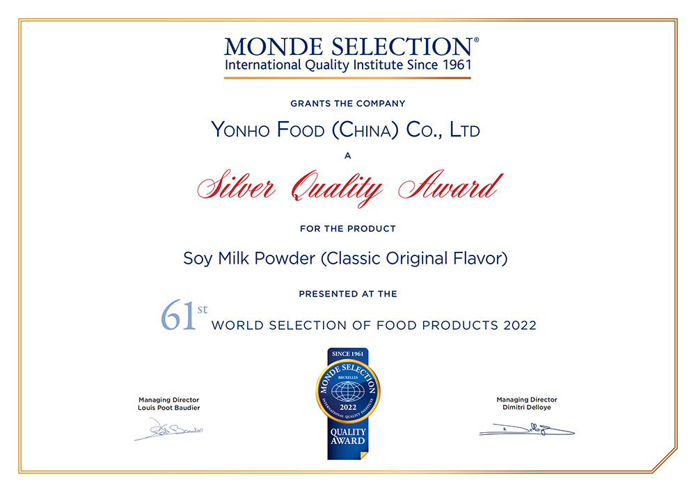 銀獎的背后,是對產(chǎn)品品質(zhì)的認可,也是對永和豆?jié){先進生產(chǎn)工藝的肯定!