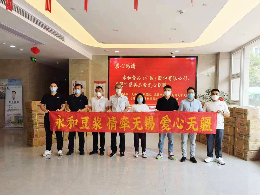 疫情來勢(shì)洶洶,給防控一線的工作人員加重了負(fù)擔(dān)。為支援一線抗疫,永和豆?jié){積極發(fā)揮行業(yè)優(yōu)勢(shì),調(diào)配資源,8月1日-8月2日,共計(jì)210箱豆?jié){粉陸續(xù)送抵無錫抗疫一線,盡己所能解決了燃眉之急,傳遞了大愛與溫暖。無錫市慈善總會(huì)孫曼旗部長(zhǎng)、無錫市新吳區(qū)敘豐家園社區(qū)華裕東書記、貢湖護(hù)理院楊仲茂院長(zhǎng)、高速交警大隊(duì)郭嘉大隊(duì)長(zhǎng)、新瑞醫(yī)院袁錦祥書記等領(lǐng)導(dǎo)出席了捐贈(zèng)儀式,感謝永和食品公司對(duì)于抗疫工作的支持。