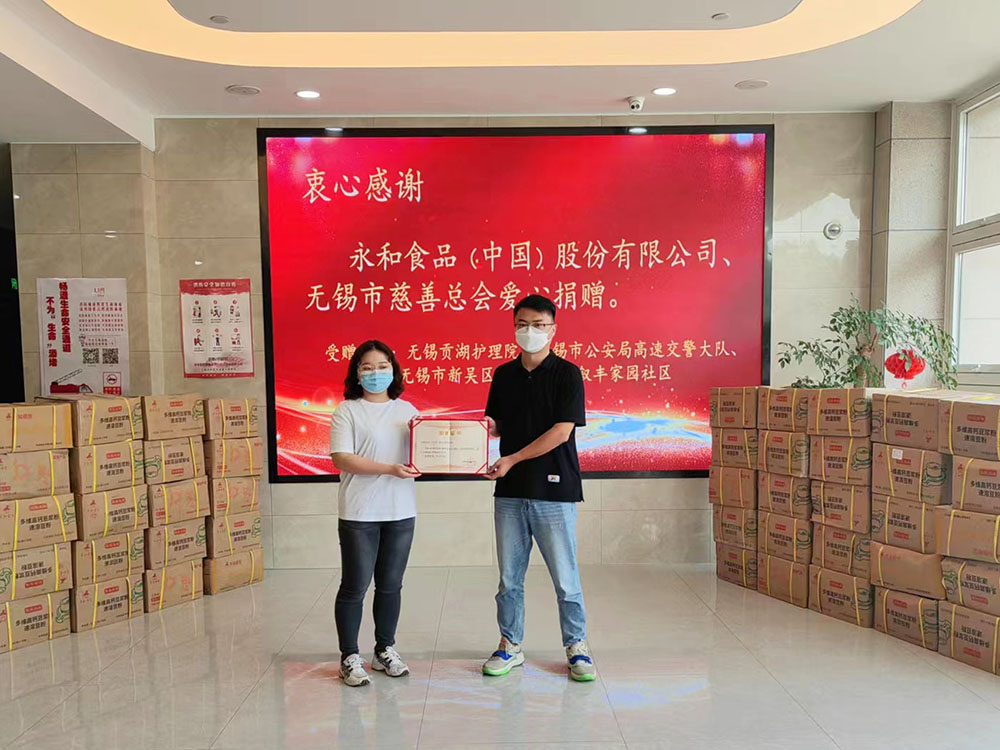 無錫市慈善總會(huì)向永和食品公司頒發(fā)了捐贈(zèng)證書,感謝其對(duì)于疫情防控工作的大力支持。這項(xiàng)證書的授予,也是慈善總會(huì)對(duì)永和豆?jié){積極投身公益慈善事業(yè),履行社會(huì)責(zé)任的高度肯定。