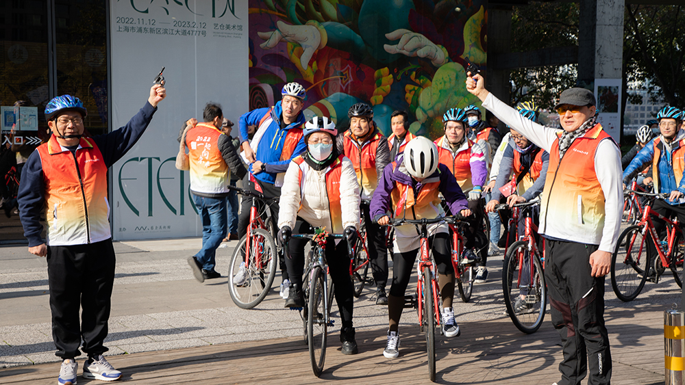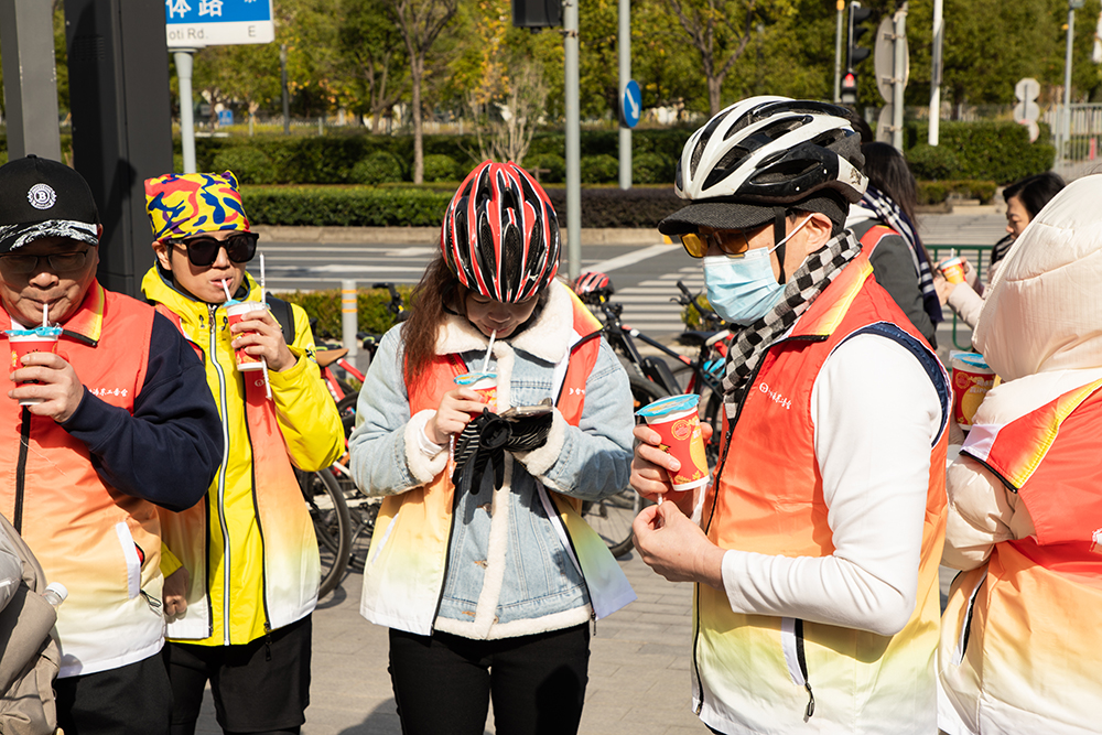 活動(dòng)當(dāng)天,逾50位在滬工作、生活的兩岸青年騎行愛(ài)好者在藝倉(cāng)美術(shù)館集合、熱身。隨著鳴笛聲響,騎手們滿載熱情,浩浩蕩蕩,競(jìng)速出發(fā)。一路上,騎手們?cè)谒俣群图で橹泻粑迈r空氣,領(lǐng)略江畔的美好風(fēng)景,沿途的互動(dòng)互助也讓大家在運(yùn)動(dòng)中加強(qiáng)了交流,增進(jìn)了了解。大家在“永和加油站”駐足補(bǔ)給,一起留下青春靚麗的合影。