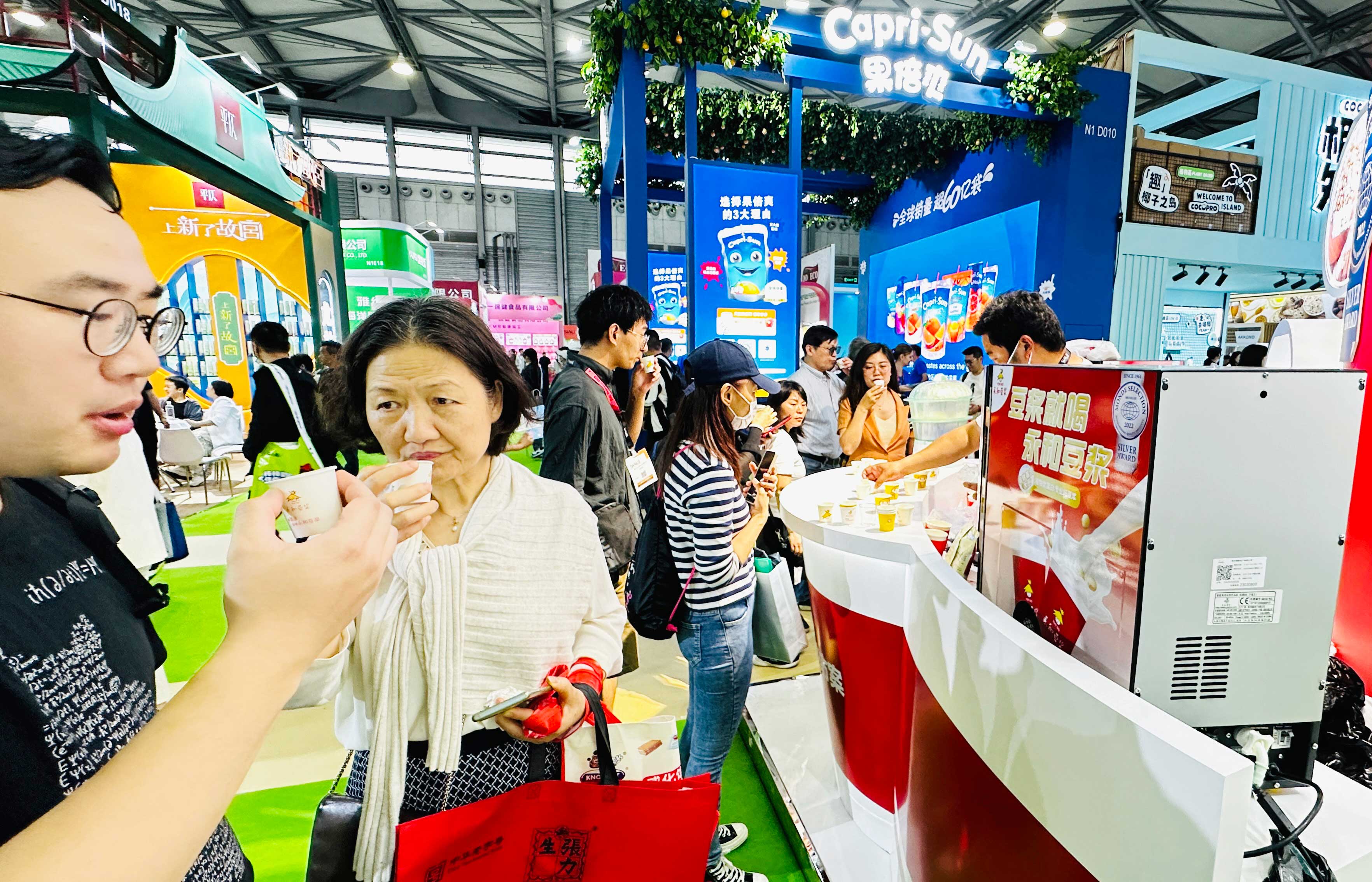 上海新國際博覽中心N1館,永和豆?jié){展廳人流如潮。中國紅亮眼設計、開放式場景化體驗、多元化產(chǎn)品矩陣全面展示了永和豆?jié){潮流化、健康化、年輕化的品牌形象,吸引了眾多觀眾駐足品嘗、到場咨詢,展會現(xiàn)場好評連連。