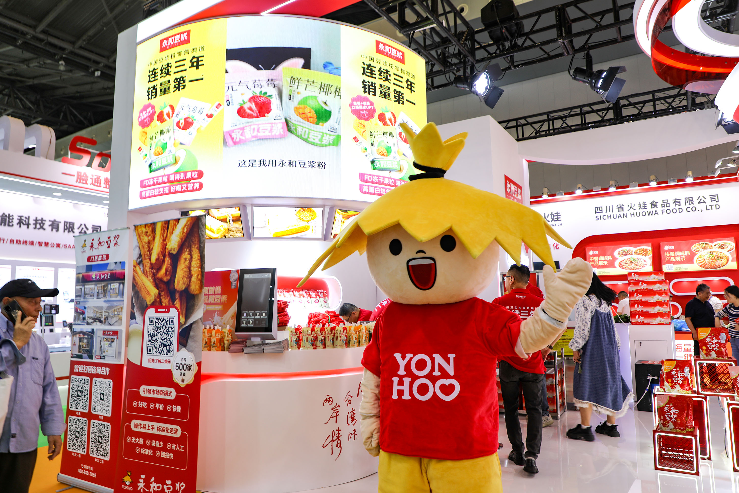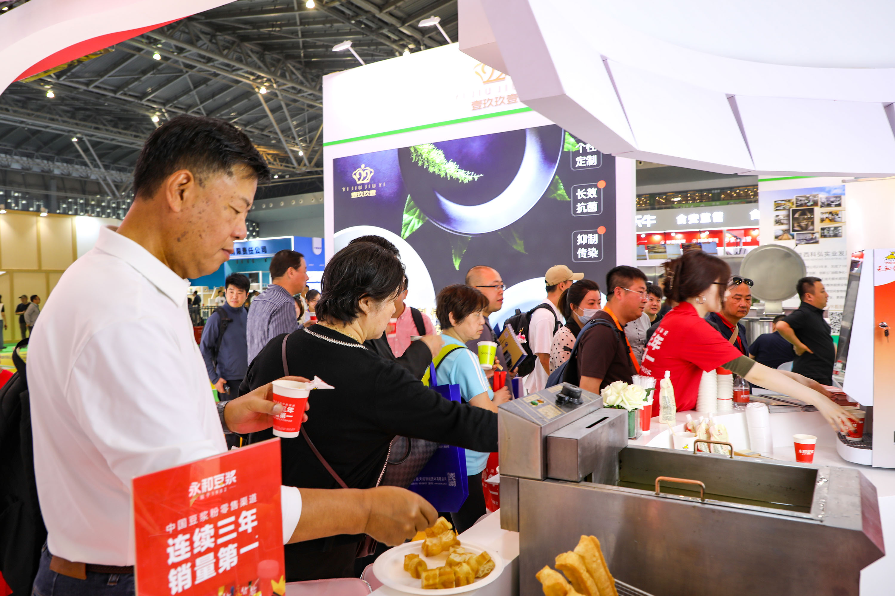 展會(huì)現(xiàn)場(chǎng),永和豆?jié){展出了涵蓋商用豆?jié){粉、即飲豆?jié){、經(jīng)典系列以及最新推出的風(fēng)味系列(如元?dú)廨?、鮮芒椰椰)和食養(yǎng)系列(如黃芪黨參、紫薯山藥)等在內(nèi)的多元化產(chǎn)品矩陣。