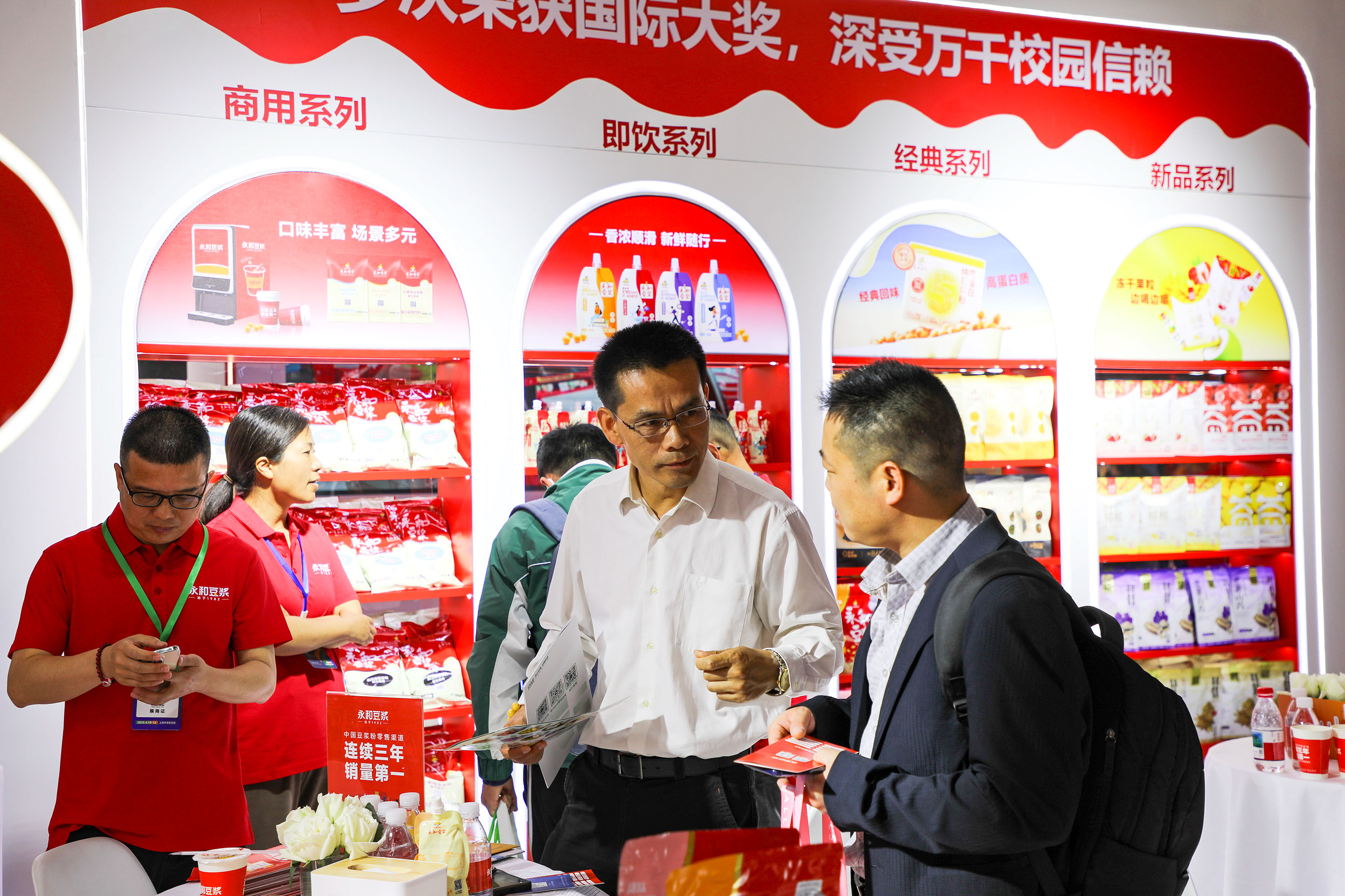 2025年4月10日至12日,第九屆中國(guó)教育后勤展覽會(huì)在上海世博展覽館盛大舉行。連續(xù)三年蟬聯(lián)中國(guó)豆?jié){粉零售渠道銷量榜首的永和豆?jié){,以“助力優(yōu)質(zhì)豆?jié){進(jìn)學(xué)校”為核心主題,攜多元化產(chǎn)品矩陣驚艷亮相,成為展會(huì)上一道亮麗的風(fēng)景線。