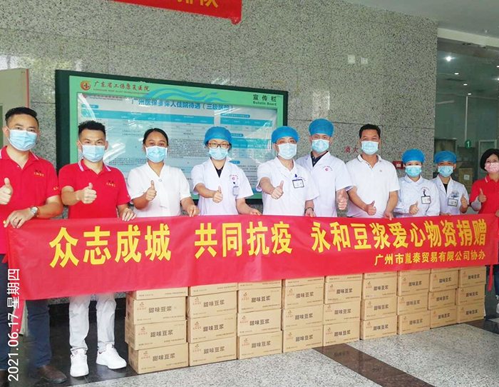 最近廣州疫情牽動著全國人民的心,無數(shù)醫(yī)護(hù)人員、一線工作者不分日夜奮戰(zhàn)在抗疫前線,他們逆行向前分秒必爭,用血肉之軀為更多人筑起了牢固的防線。一方有難,八方支援!始終心系抗疫一線醫(yī)護(hù)人員的永和豆?jié){,奔赴前線為廣州番禺中醫(yī)院和廣東省工傷醫(yī)院送去了大量營養(yǎng)豐富的豆?jié){,讓這些“最美守護(hù)者”可以及時補(bǔ)充優(yōu)質(zhì)蛋白,為身體充能。濟(jì)人之困,解人之憂!永和豆?jié){與廣州人民守望相助,攜手渡難關(guān)!