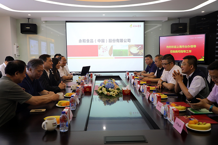 2019年7月17日,上海市臺辦李驍東副主任一行蒞臨永和豆?jié){總部調(diào)研和指導(dǎo)工作,陪同調(diào)研和指導(dǎo)工作的領(lǐng)導(dǎo)還有市臺辦經(jīng)濟(jì)處丁磊處長、市臺協(xié)汪友華秘書長、市臺辦研究室陳小勇副處長、市臺辦經(jīng)濟(jì)處王宇干部、市臺協(xié)秘書處閔家瑞干部。市臺協(xié)副會長、市臺協(xié)浦東工委會主委、永和食品(中國)股份有限公司林建雄董事長,市臺協(xié)浦東工委會羅佩燕副主委,市臺協(xié)浦東工委會張惠民總干事,浦東臺辦范桂國前副主任,永和食品(中國)股份有限公司鄧毅雄副總經(jīng)理、餐飲事業(yè)群支鐵牛副總經(jīng)理出席了本次會議。