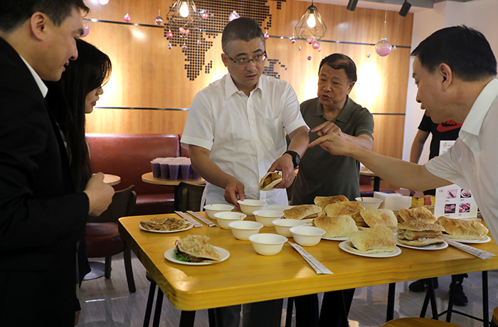 會議結(jié)束后,李驍東副主任一行指導(dǎo)了永和公司的品牌文化建設(shè),參觀了永和公司的“品牌文化館”和“永和休閑吧”。李驍東副主任一行饒有興趣地品嘗了在“永和休閑吧”現(xiàn)場制作的永和豆?jié){、臺灣手抓餅、油條、青稞面和紫薯青稞豆?jié){等特色美食。李驍東副主任對永和公司的美食贊不絕口,要求永和公司嚴(yán)抓食品安全,繼續(xù)為市民的飲食安全做出貢獻(xiàn)。