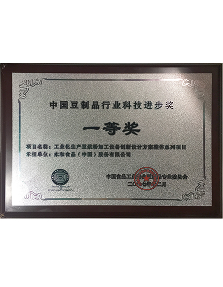201712 月永和食品(中國)股份有限公司榮獲2017年度中國豆制品行業(yè)科技進步獎一等獎 -