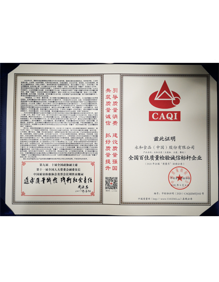 20209 月永和食品(股份)有限公司榮獲全國百佳質(zhì)量檢驗誠信標桿企業(yè)稱號 -
