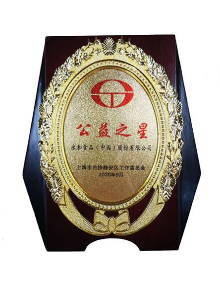 20209 月永和食品(中國)股份有限公司榮獲上海市臺協(xié)靜安區(qū)工作委員會頒發(fā)的公益之星稱號 -
