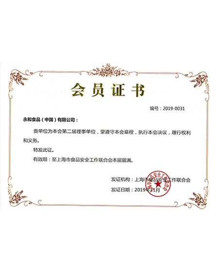 201911 月2019年永和食品(中國)股份有限公司成為上海市食品安全工作聯(lián)合會第二屆理事單位 -