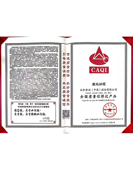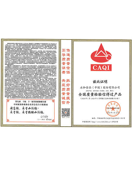 20232 月永和食品(中國)股份有限公司榮獲全國質(zhì)量檢驗信得過產(chǎn)品 -