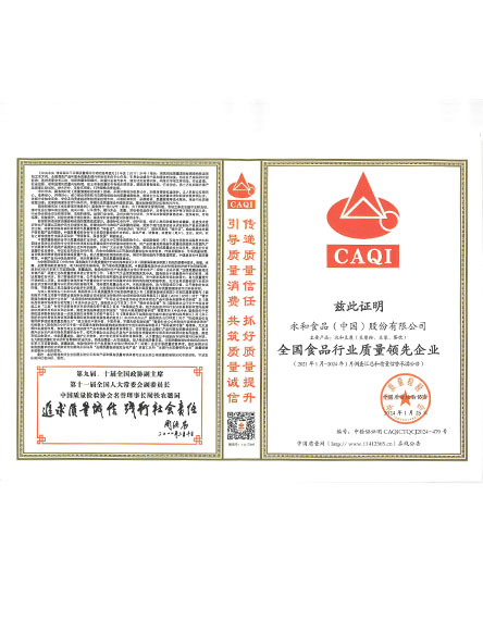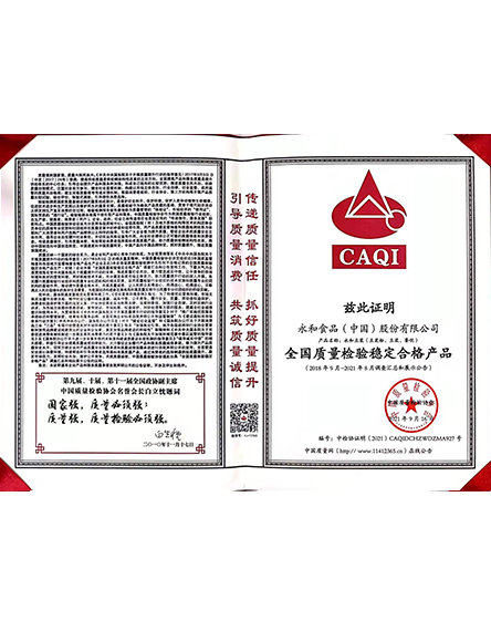 20219 月永和食品(中國)股份有限公司榮獲全國質(zhì)量檢驗穩(wěn)定合格產(chǎn)品 -