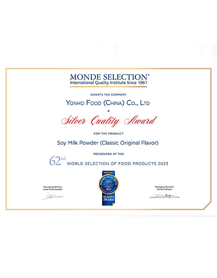 20235 月永和食品旗下經(jīng)典原味豆?jié){粉350g榮獲世界品質(zhì)評鑒大獎 -