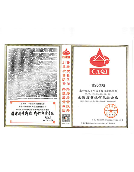 20241 月永和食品(中國)股份有限公司榮獲全國質(zhì)量檢驗信得過產(chǎn)品 -